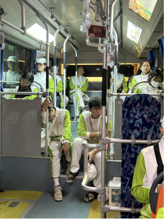 赛事志愿者晚上十二点拖着疲惫的身体登上返校巴士