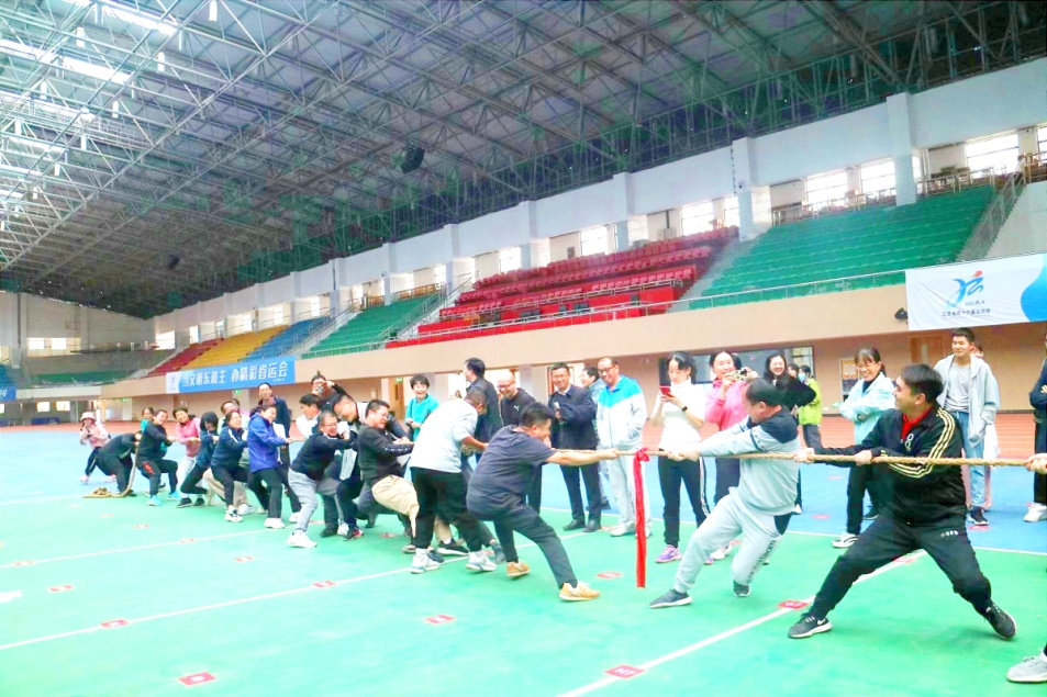 为了热烈庆祝党的二十大胜利召开,喜迎即将到来的江西省第十六届运动会,丰富教职工课余文化生活,倡导“每天健身一小时,健康工作五十年,幸福生活一辈子”理念,进一步增强教师身体素质,提升学院团队凝聚力,10月27日下午,开云kaiyun网站2022年教职工趣味运动会在校北区体育训练馆组织开展,学院全体党政班子成员及广大教职工积极参与。院党委书记赵宇剑、武宁县东山村“兰菇良”生态蔬菜基地总经理何兰兰分别为活动致辞,院长许松涛宣布趣味运动会开幕。