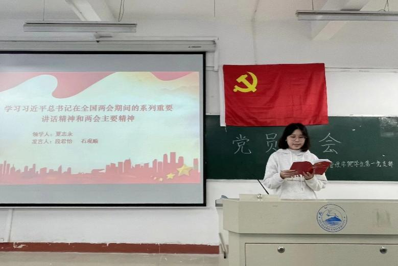 学生第一党支部段君怡在学习了习近平总书记在今年全国两会期间的系列重要讲话精神和全国两会精神后发表感悟:“新的历史节点,新的奋斗起点,从春天出发,向着美好未来奋进。我要认真学习贯彻习近平总书记重要讲话精神和全国两会精神,深刻领悟‘两个确立’的决定性意义,增强‘四个意识’,坚定‘四个自信’,做到‘两个维护’。在新时代的征程上,作为青年一代的我们要以更加昂扬的斗志、更加务实的作风、更加扎实的工作,为实现中华民族伟大复兴的中国梦而努力奋斗。”