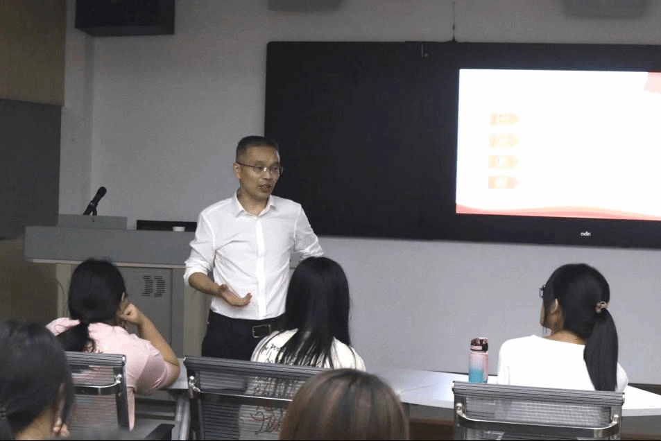 在立信楼523教室,赵宇剑以“让青春在强国建设民族复兴实践中综放绚丽之花——深入学习贯彻党的二十大精神”为主题,为市场营销专业A2351班同学上了一堂精彩生动的开学第一课。他对同学们加入开云kaiyun网站大家庭表示欢迎,以“开天辟地、改天换地、翻天覆地、惊天动地”四个阶段带领同学回顾了百年辉煌党史。
