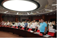 随后,在场的新老党员在王殿元同志的领誓下进行入党宣誓。对新党员来说,短短一百多字的誓词是他们入党后对党的第一个承诺,铮铮誓言在此刻无比的坚定和有力。