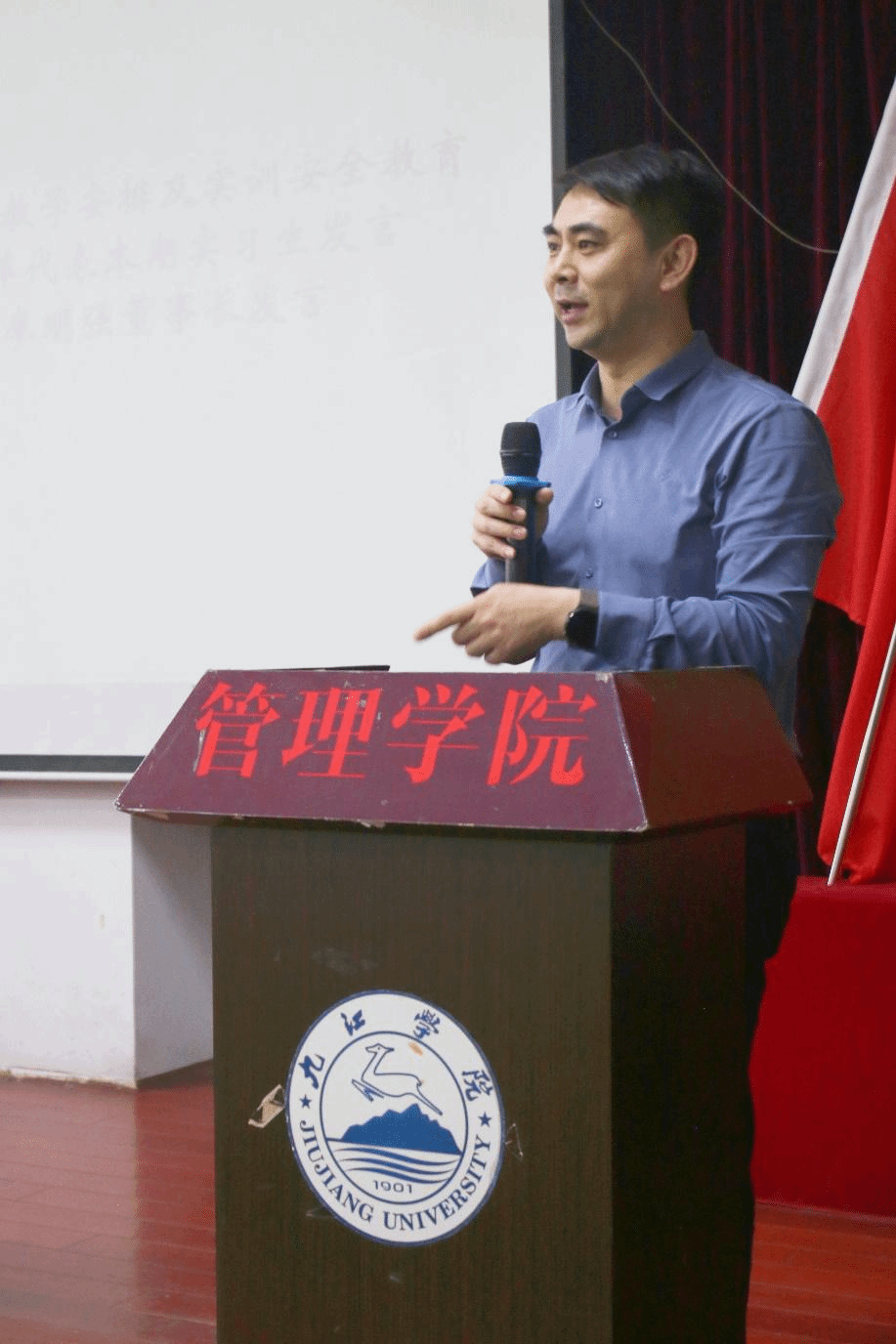 企业导师廖明强就实训基地情况做了介绍,并代表企业就作为学生实训环节各项保障做出承诺。