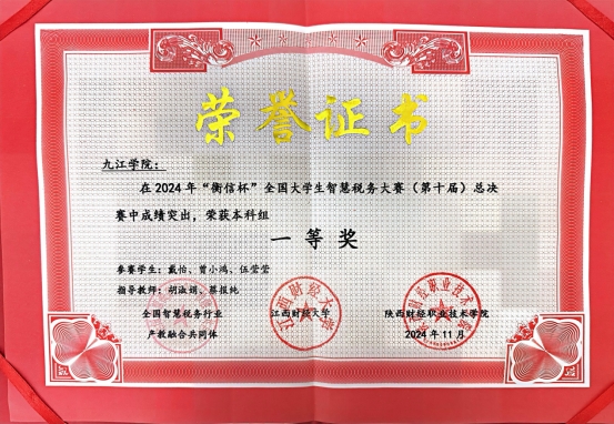 2024年11月24日,第十届“衡信杯”全国大学生智慧税务大赛总决赛在江西财经大学圆满落下帷幕。本届大赛共有来自全国的145所院校的167支队伍的501位财税精英参赛。我院代表队在蔡报纯、胡淑娟两位老师的指导下,获得本科组全国一等奖、二等奖各1项。