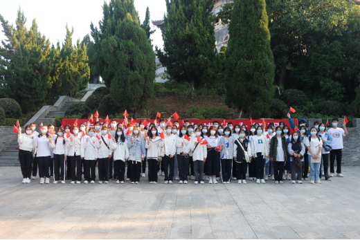 上午直播结束后,开云kaiyun网站组织各团支部团员青年来到南山公园烈士陵园,向革命先烈致敬,把讲话精神内化于心,外化于行,将在大会上的所思所悟转化为实际行动。活动中,各团支部代表来到纪念碑前,向革命先烈献花,鞠躬默哀。纪念仪式结束后,同学们在烈士园陵前作青春宣誓,并摆出“20”字样,庆祝党的二十大胜利召开。“我宣誓,我将以青春之名,喜迎党的二十大,立志民族复兴,不负韶华,不负时代,不负人民,在青春的赛道上奋力奔跑,争取跑出当代青年的最好成绩!”同学们的宣誓铿锵有力,展示出新时代青年优秀的精神风貌,游客们驻足观看,被同学们的青春告白所打动,纷纷为同学们拍照点赞。