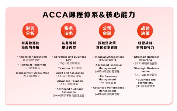 ACCA实验班的课程学习体系完善,学生可以全面掌握财务、财务管理、审计、税务及经营战略等方面的专业知识,提升分析能力并拓宽战略思维。