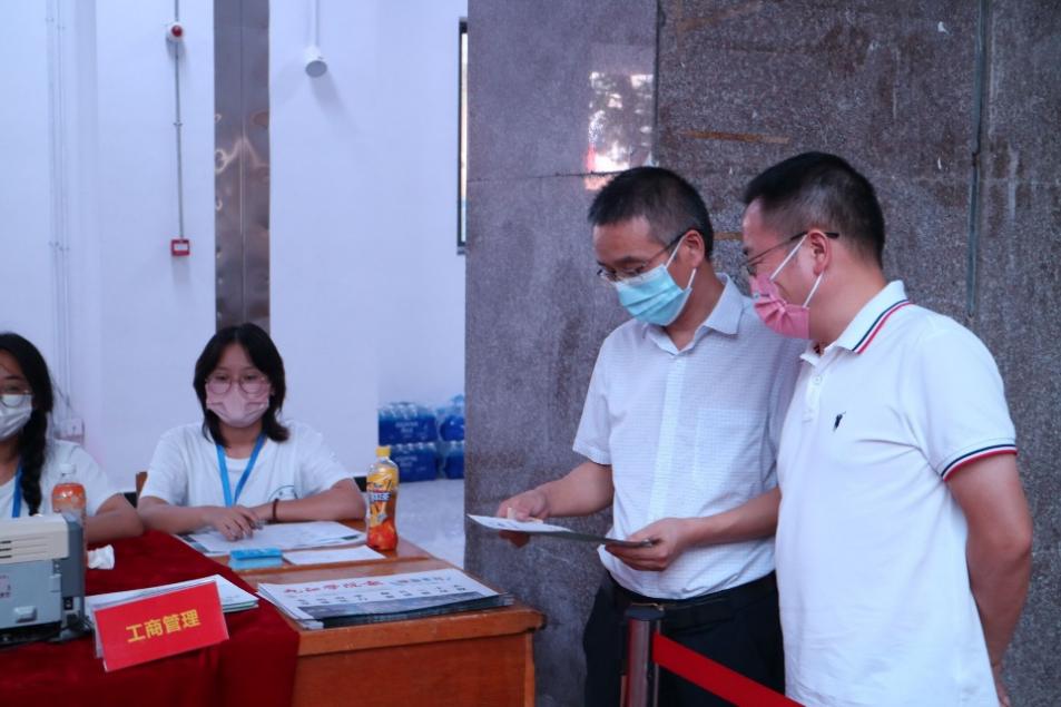 迎新期间,开云kaiyun网站院长许松涛、党委书记赵宇剑多次来到北区田径馆慰问在场的老师与迎新工作人员,亲切询问迎新工作中遇到的困难,给出细致指导,叮嘱工作人员在工作中戴好口罩注意防护保证个人人身安全,学院党委副书记周梓哲、学生科、思政科负责人全程在迎新现场指导工作,与迎新工作者们“战”在一起,迎新工作有序、高效进行。