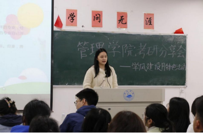来自会计A1928班已被辽宁石油化工大学拟录取的姜子薇同学,她就为什么要考研和如何考研两个问题为到场观众进行了解答,从考研目标确定、考研择校方向、考研基础阶段规划、考研过程中如何克服各种困难以及专业课复习技巧等方面进行了细致阐述。