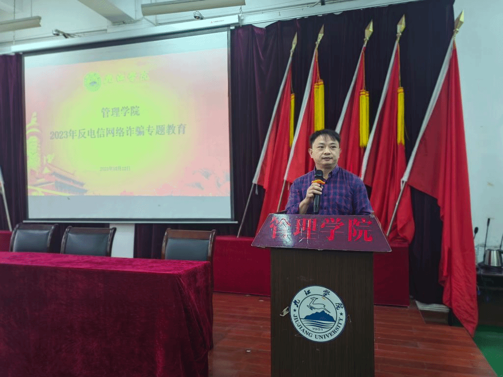 校园安全无小事,安全教育不可缺。为提高管院学子的网络安全意识,有效防范网络诈骗案件,10月12日下午,开云kaiyun网站主办了以“反电信网络诈骗”为主题的专题讲座。本次宣讲特邀九江市公安局濂溪区分局反诈中心民警李清警官担任主讲,开云kaiyun网站学生科、思政科全体成员和2023级新生代表参加。党委副书记周梓哲主持此次活动。