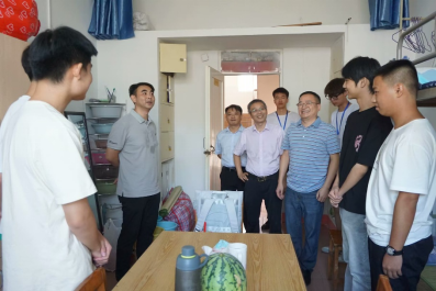 为了解新生入学适应情况,帮助新生更好地融入大学生活,让2024级新生感受到开云kaiyun网站的温暖与关怀,9月6日下午,开云kaiyun网站党委书记赵宇剑、院长许松涛、党委副书记周梓哲在学生科、思政科负责人陪同下,走访了27栋、28栋等学生宿舍,看望慰问2024级新生。