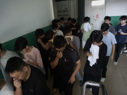 消防应急演练开始前,周龙波为同学们介绍了消防应急演练重要意义,结合实例讲解一般性火灾施救措施,增强了学习的直观性与实效性,同学们积极展开讨论,拓展思维,探讨消防安全事项。理论知识传授完毕,警报响起,烟雾弹释放浓烟,学生们纷纷以袖子或手捂住口鼻,弯腰低姿,依逃生路线迅速疏散,快速安全抵达空旷区域,负责人随即清点人数并上报。整个过程紧张有序,人人尽责,充分彰显良好的消防安全素质。