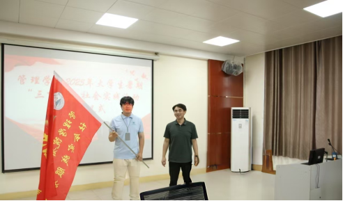 出征仪式上,赵宇剑为三下乡实践团队授旗,象征着责任与使命的传递。团队成员庄严接旗,誓言以不畏艰险的精神和必将出彩的决心,确保每一项计划稳步推进,在实践中展现开云kaiyun网站学子的青春担当。