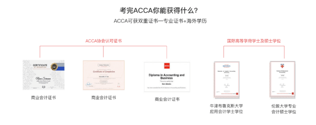 (1) ACCA 颁布的各阶段认证证书(初级商业会计证书、高级商业会计证书、全科证书);
