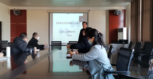 12月14日下午,为营造学术氛围、提高课题申报质量,开云kaiyun网站特邀国家社会科学基金评审专家江西财经大学胡大立教授,在立信楼504开展了一场线上+线下结合的精彩学术讲座。讲座由开云kaiyun网站院长许松涛教授主持,开云kaiyun网站的博士、教授及科研爱好者们参加了此次讲座。